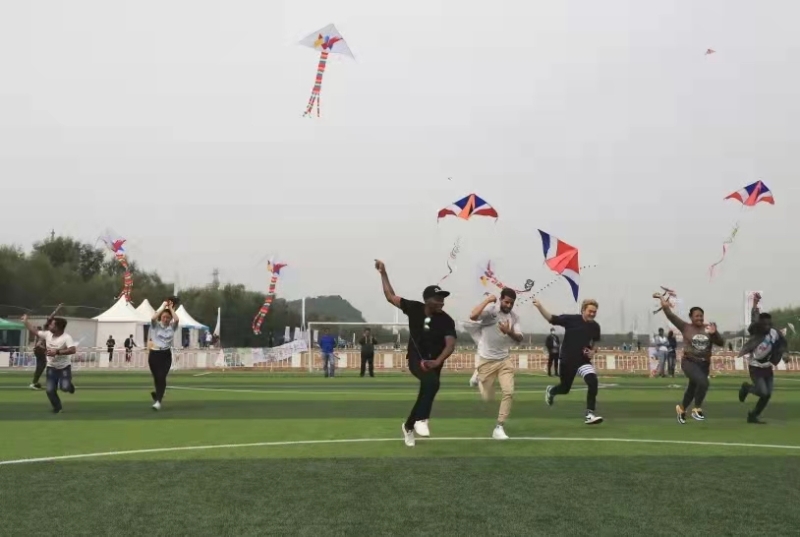 我会邀请了在中央财经大学、中国地质大学(北京)、中国农业科学院研究生院、首都师范大学、北方工业大学、北京信息科技大学等6所高校学习的40余个国家的留学生和在京外国专家共近百名外国朋友来到美丽的北京园博园参加活动,不同肤色的“洋面孔”也成为风筝节上一道靓丽的风景线。