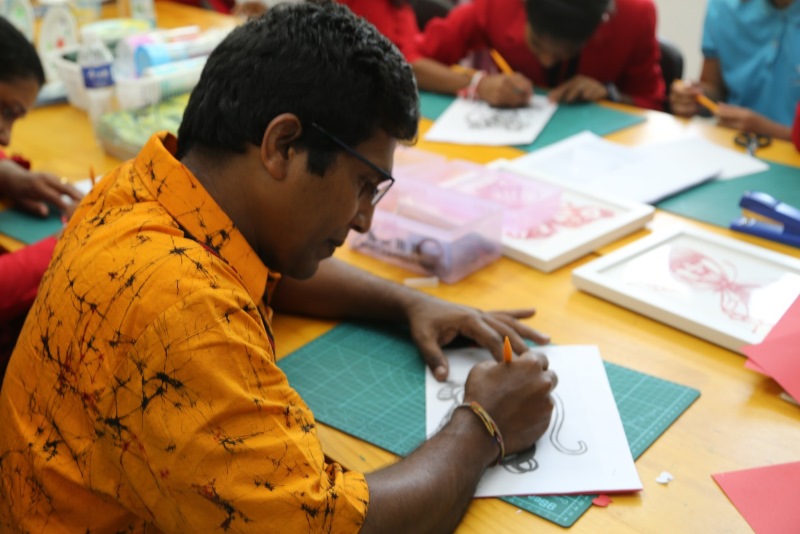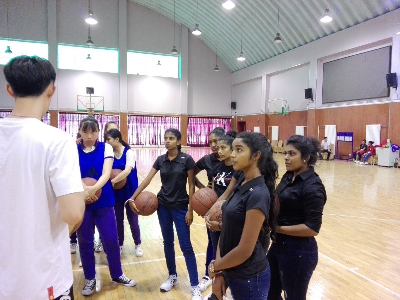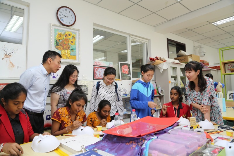 在大峪中学,中斯两地师生共同制作剪纸、瓷盘壁画、扎染、脸谱等,体验特色精彩美术课程,进行了舞蹈、民乐展示交流。中午斯里兰卡总厨为学生们制作了精美的斯里兰卡特色美食。学校食堂也为斯里兰卡同学制作了饺子等中国传统美食。在新桥路中学,代表团与中方学生共同学习传统非遗太平鼓舞蹈和皮影制作及表演,参加篮球训练。