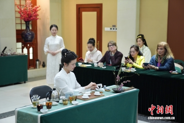 3月5日,“三八”国际妇女节来临之际,来自比利时、土耳其、希腊、智利、摩洛哥等24个国家的驻华大使夫人在北京参加大使夫人茶美学品鉴活动,以茶为媒,共话文化交流互鉴。