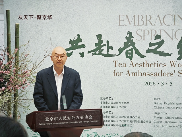 西城区副区长杜洪悦表示,西城区是北京建城肇始之地,孕育了独具魅力的茶文化。马连道作为“中国茶叶第一街”,正依托深厚底蕴推动传统茶产业向数字化转型,全力打造“中国数据街”,诚挚邀请各位大使夫人常来西城,到广安门外街道马连道走一走,感受传统与现代融合的独特魅力。