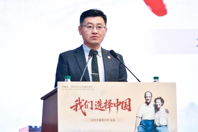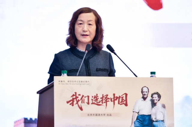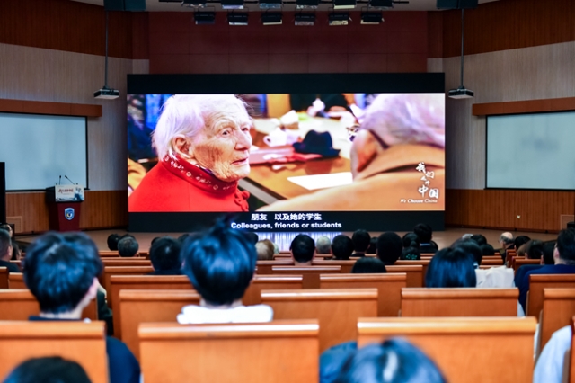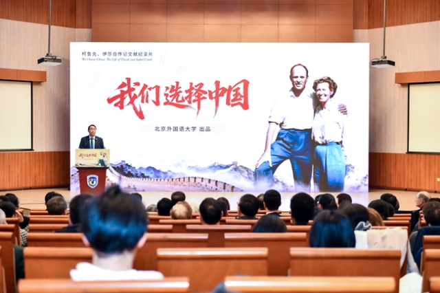随后,纪录片《我们选择中国》正式首映。该片是北外“双一流”建设重点项目,历时四年精心制作。创作团队自2014年起跟踪记录,跋涉万里,重访四川兴隆场、河北十里店、南海山村等历史现场,并远赴加拿大搜集史料,采访了数十位亲历者与学者。纪录片以中华人民共和国“友谊勋章”获得者、北外外国专家伊莎白・柯鲁克同志与丈夫大卫・柯鲁克同志的百年人生为主线,以20世纪以来的宏大历史变迁为背景,串联起两位国际友人的不凡历程。影片以海量生动老照片、珍贵影像资料为核心基底,精选关键历史瞬间,辅以情景还原、动画再现等艺术手法,融合亲历者口述、家属及见证人访谈、事件发生地实景拍摄,用温暖细腻的光影语言,重新讲述了夫妇二人的人生故事。片中清晰刻画了这样一组动人形象:在每一个人生关键转折点,伊莎白与柯鲁克都坚定选择中国,将大半生光阴与主要精力毫无保留地奉献给中国人民和新中国教育事业,始终与中国人民同呼吸、共命运,矢志不渝、无怨无悔。一个个鲜活具象的细节,让“扎根中国、胸怀天下、坚守信仰、潜心育人”的“伊莎白精神”跃然银幕,愈发可感可学。