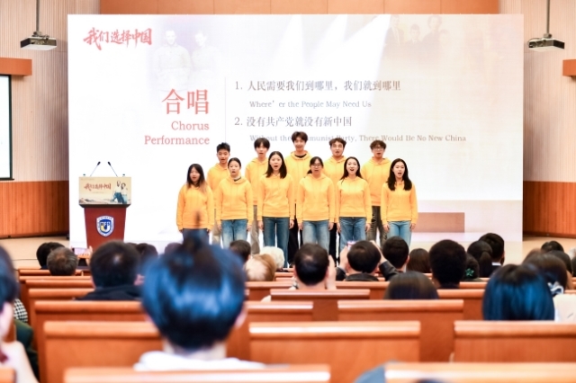 在中英文校歌《人民需要我们到哪里我们就到哪里》和《没有共产党就没有新中国》合唱中,活动拉开序幕。